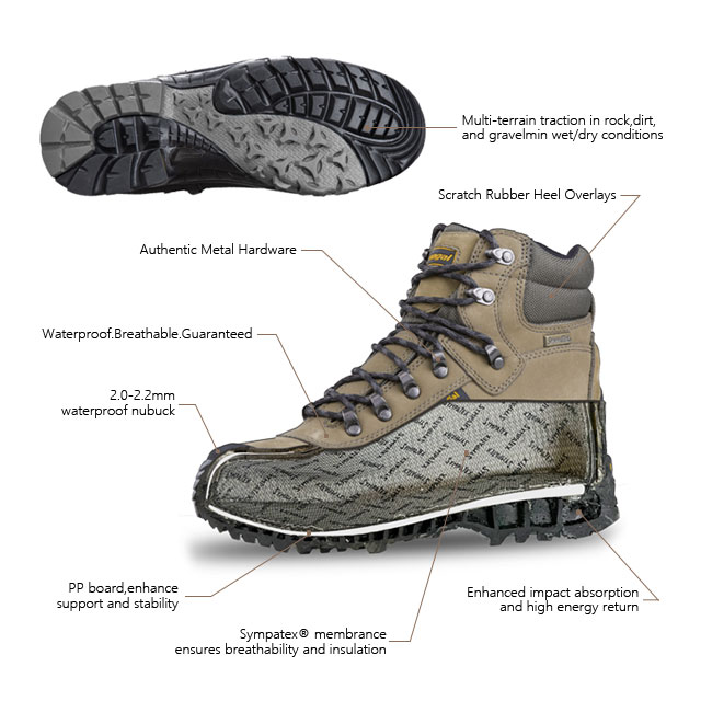 Горен материјал Водоотпорна кожа од Нубук + Најлонска ткаенина Материјал за поставата Sympatex мембрана