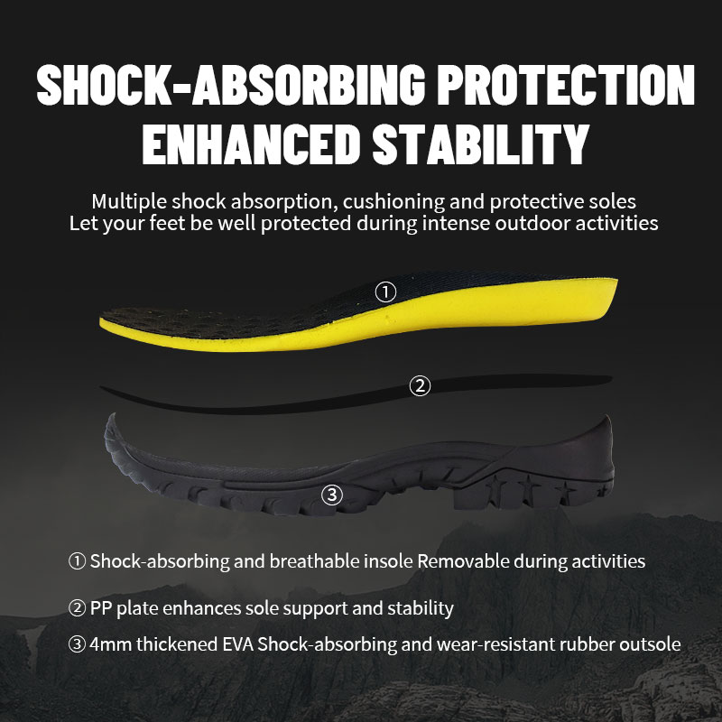 ③ 4mm Задебелен EVA гумен надворешен ѓон кој апсорбира удари и отпорен на абење.