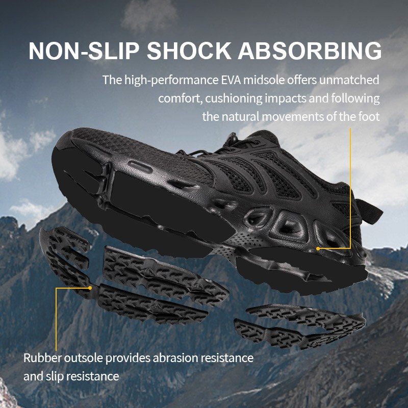 Трекинг чевли со апсорпција на удари EVA се изградени за патеката - влажна или суво. Со материјали што брзо се сушат и одводни порти во лакот, брзо фрла вода кога одите од поток до врв. Гумената фластер за петица ја зацврстува стабилноста, додека средниот ѓон EVA обезбедува мека удобност што ги апсорбира ударите под нозете. А цврстиот гумен надворешен ѓон? Изграден да држи речиси сè - карпа, кал, распуштен чакал. Тој е амфибиски, агилен и изграден да се движи со вас.