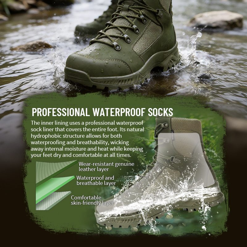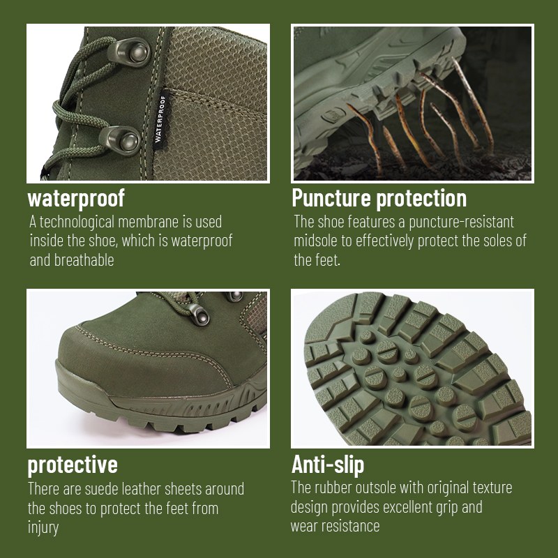 Овие борбени водоотпорни чизми кои се отпорни на пробивање се на залиха и подготвени за испорака, со нарачки почнувајќи од само 10 пара. За повеќе детали или прашања за цените, слободно контактирајте во секое време. Приспособувањето е исто така достапно со минимална нарачка од 800 пара. И овој модел ги има следните предности: