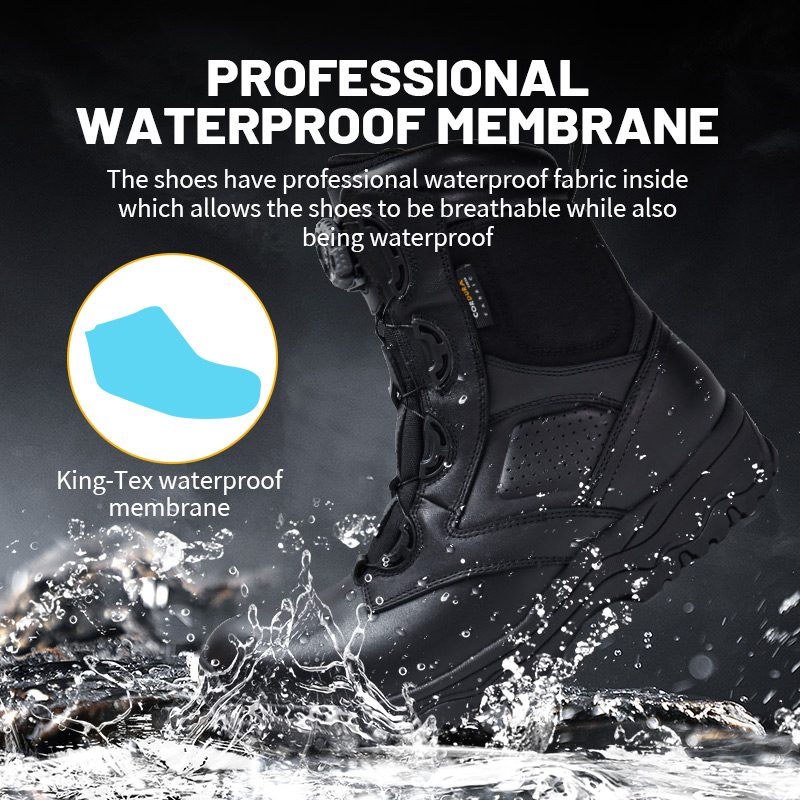 Изграден со професионална водоотпорна мембрана која ја задржува водата додека ги пушта нозете да дишат - за да останете суви, а не испотени.