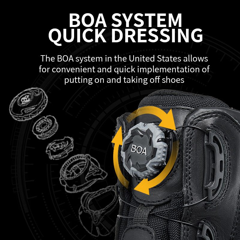 Системот BOA го прави вклучувањето/исклучувањето без напор: брзо извртување за затегнување, влечење за ослободување. Без врвки, без мака.