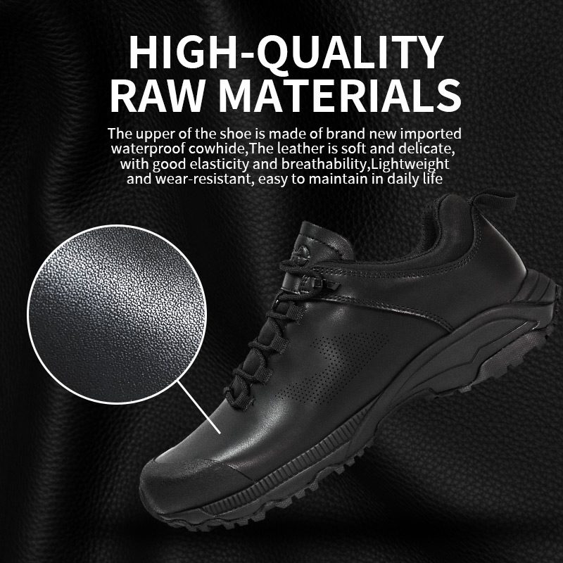 Горниот дел е изработен од врвна увезена водоотпорна говедска кожа. Кожата е мека, фино текстура и нуди добра еластичност и дише. Лесен е, издржлив и лесен за одржување при секојдневна употреба.