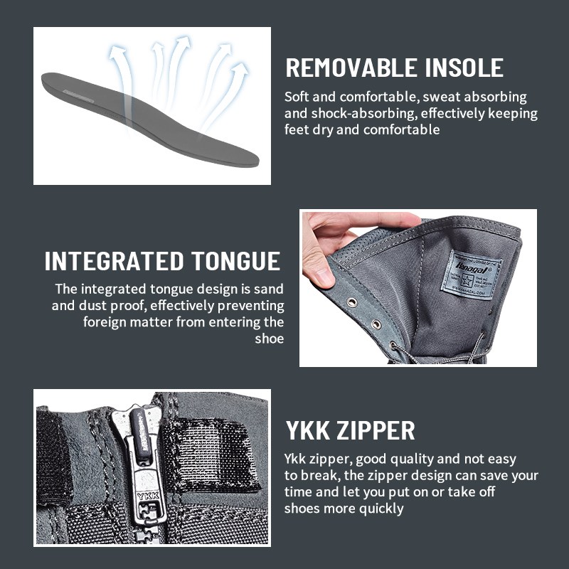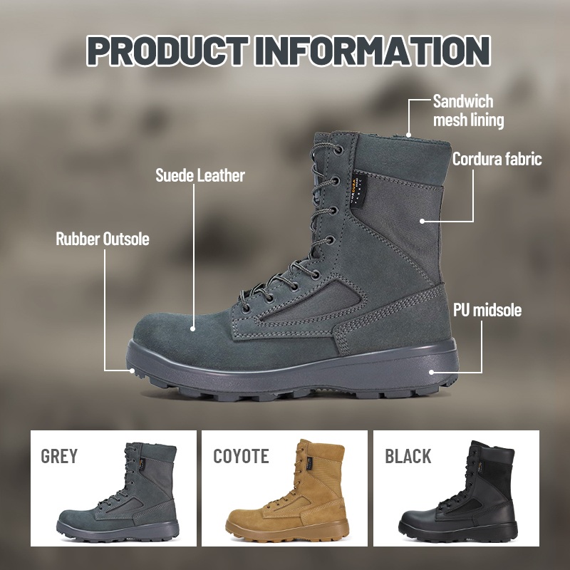 Ветерот не може да влезе. Песокот не може да се протне. Лизгањето не е опција. Пустинските тактички чизми отпорни на ветровито отпорни на песок обезбедуваат сигурна заштита таму каде што пустината тестира сè: запечатената конструкција го одржува финиот ронки, а агресивниот надворешен ѓон подеднакво ги фаќа лабавиот песок и карпестата почва. Испратете ни прашање за дополнителни информации.