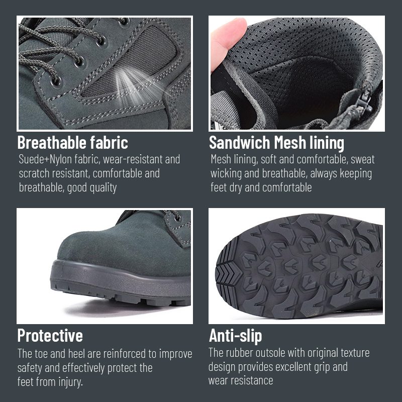 Овие Пустински тактички чизми отпорни на ветровито отпорни на песок се достапни за прилагодување во бои, материјали и детали, со MOQ од 800 пара, идеални за соработки со брендови и групни набавки. И овие пустински чизми ги имаат следните предности: